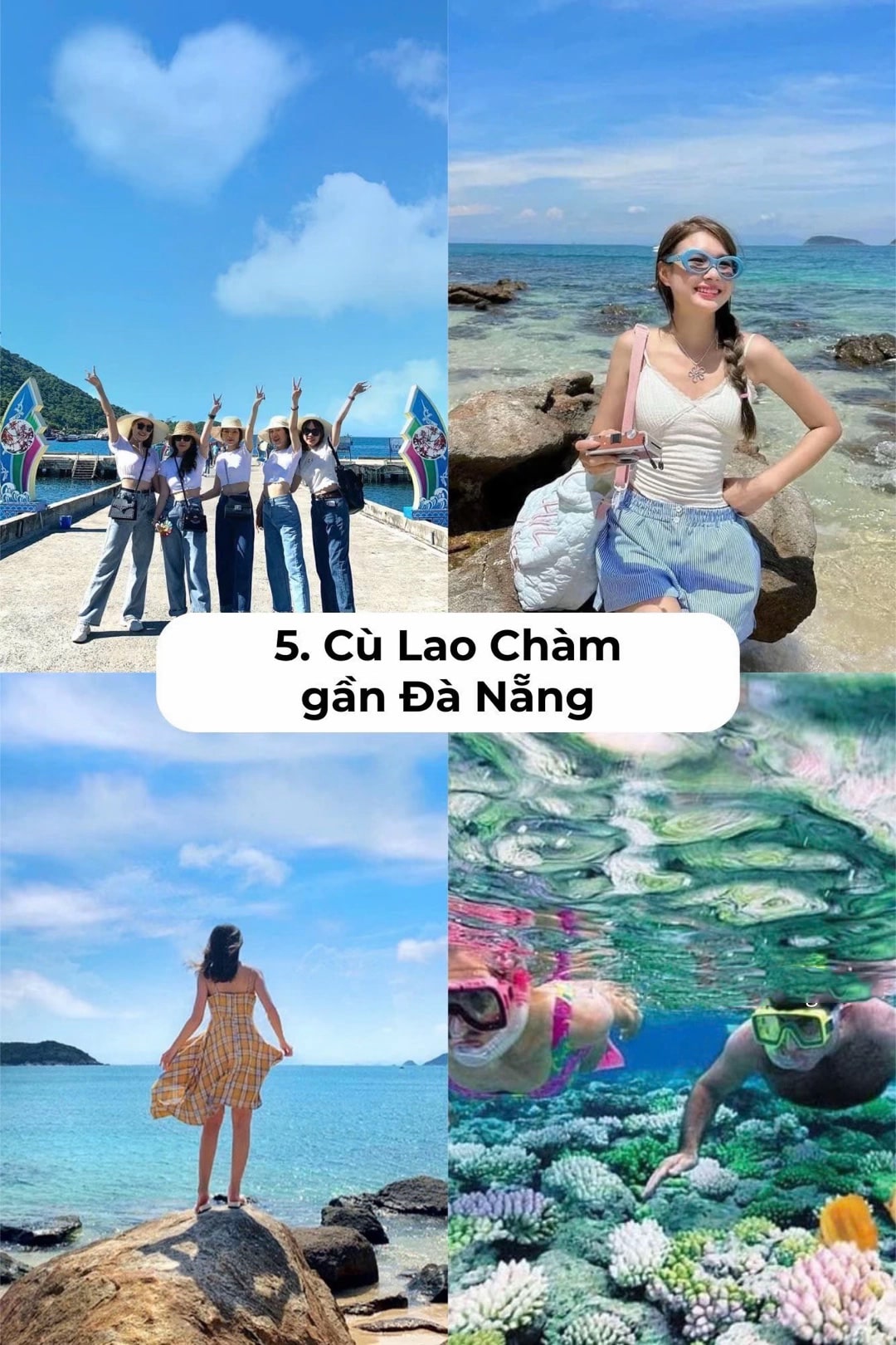 Cách Đà Nẵng khoảng 30 phút đi tàu, Cù Lao Chàm nổi bật với làn nước xanh trong, hệ sinh thái phong phú và không khí trong lành. Du khách có thể lặn ngắm san hô, tham quan làng chài, thưởng thức hải sản tươi ngon.